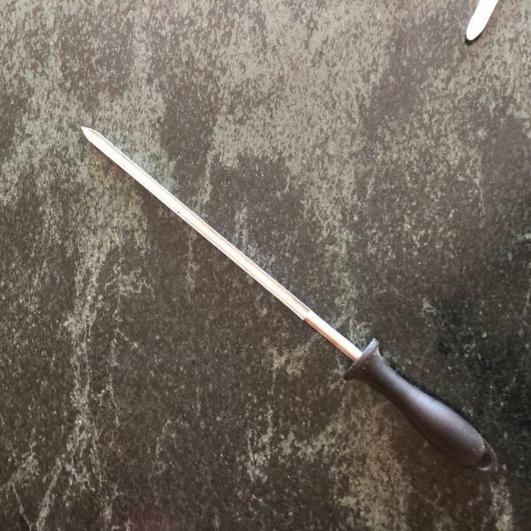 This tool is called a larding needle and is used to insert a vein of rich lard into a cut of meat that is overly lean. A well-marbled cut needs no additional fat to enhance its flavor but some very lean meats like venison benefit greatly by having a vein of flavor-enhancing lard inserted in them. A great tool if you love lean meat but dislike roasted loafers!