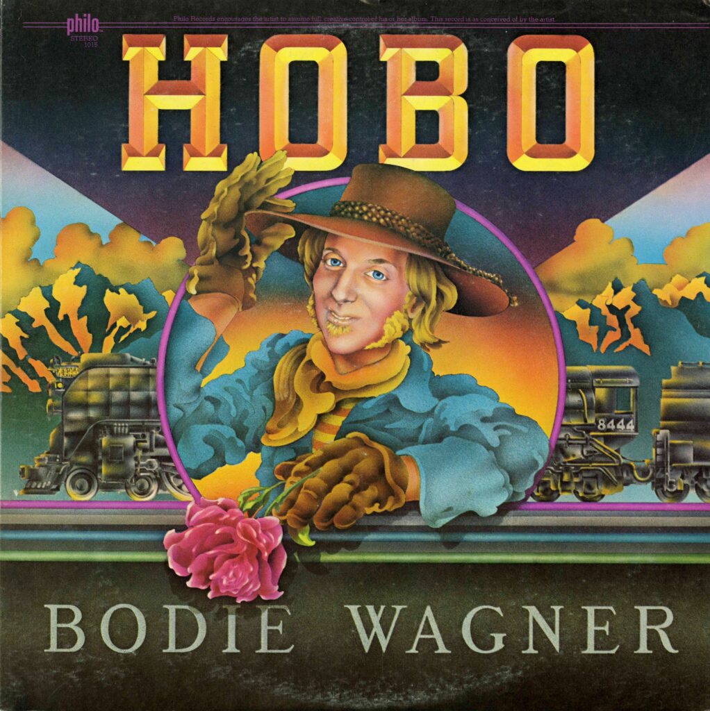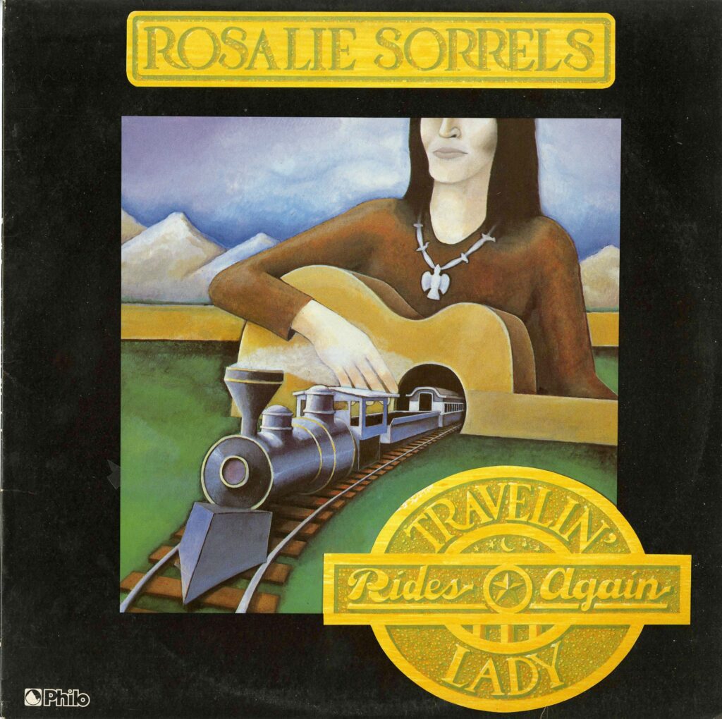 Album cover with guitar and train illustration.