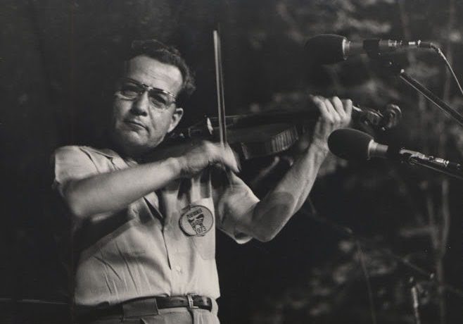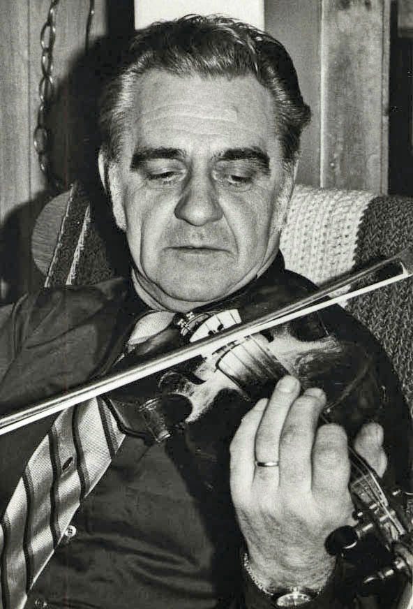 Man playing violin on album cover.