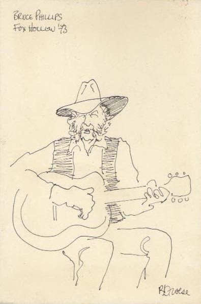 Man with hat playing guitar sketch.