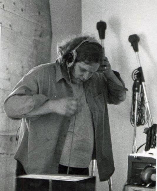 Person wearing headphones in a recording studio.