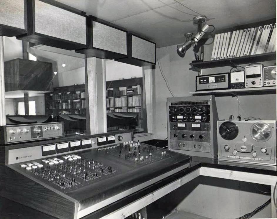 Vintage recording studio equipment and control panel.