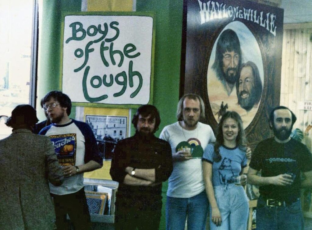 Group posing with "Boys of the Lough" poster.