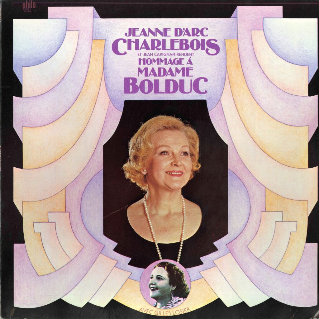 Woman smiling on album cover, green background.
