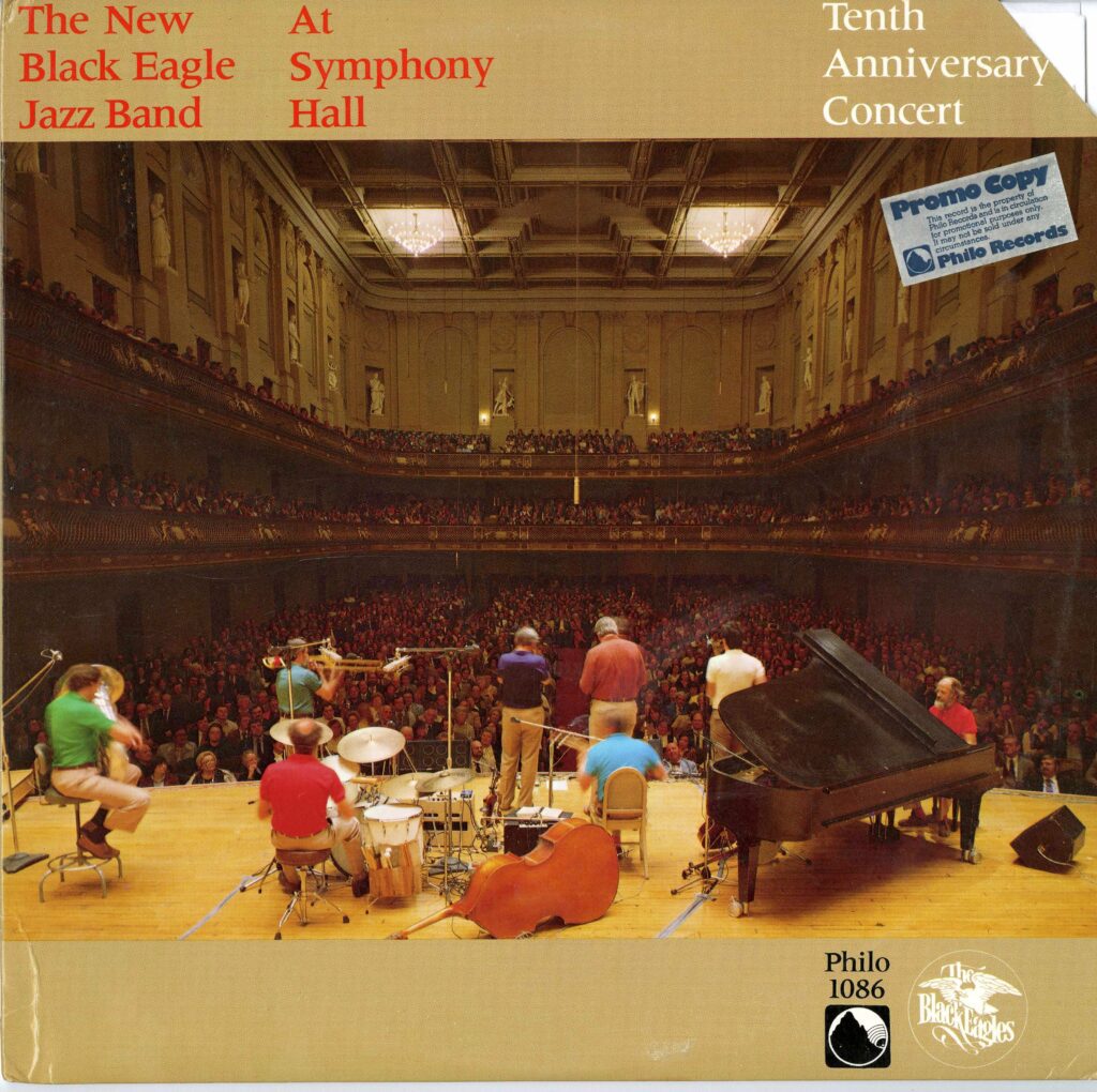 Jazz band performing at Symphony Hall stage.