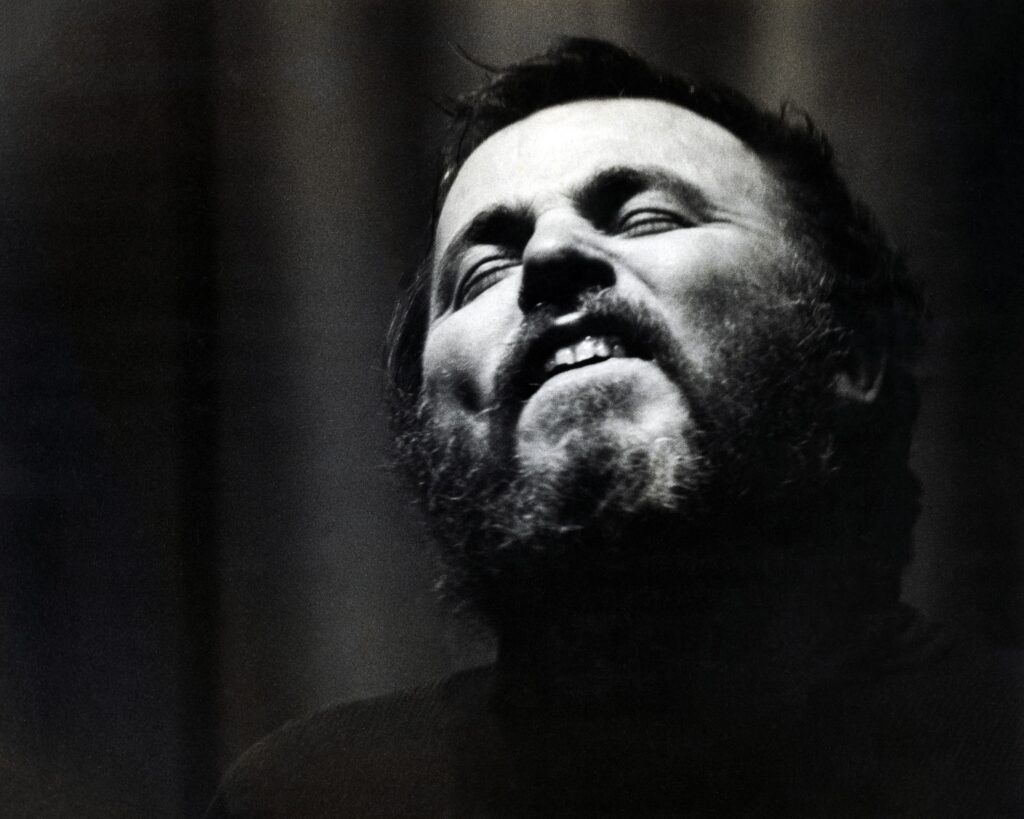 Man passionately singing with eyes closed.